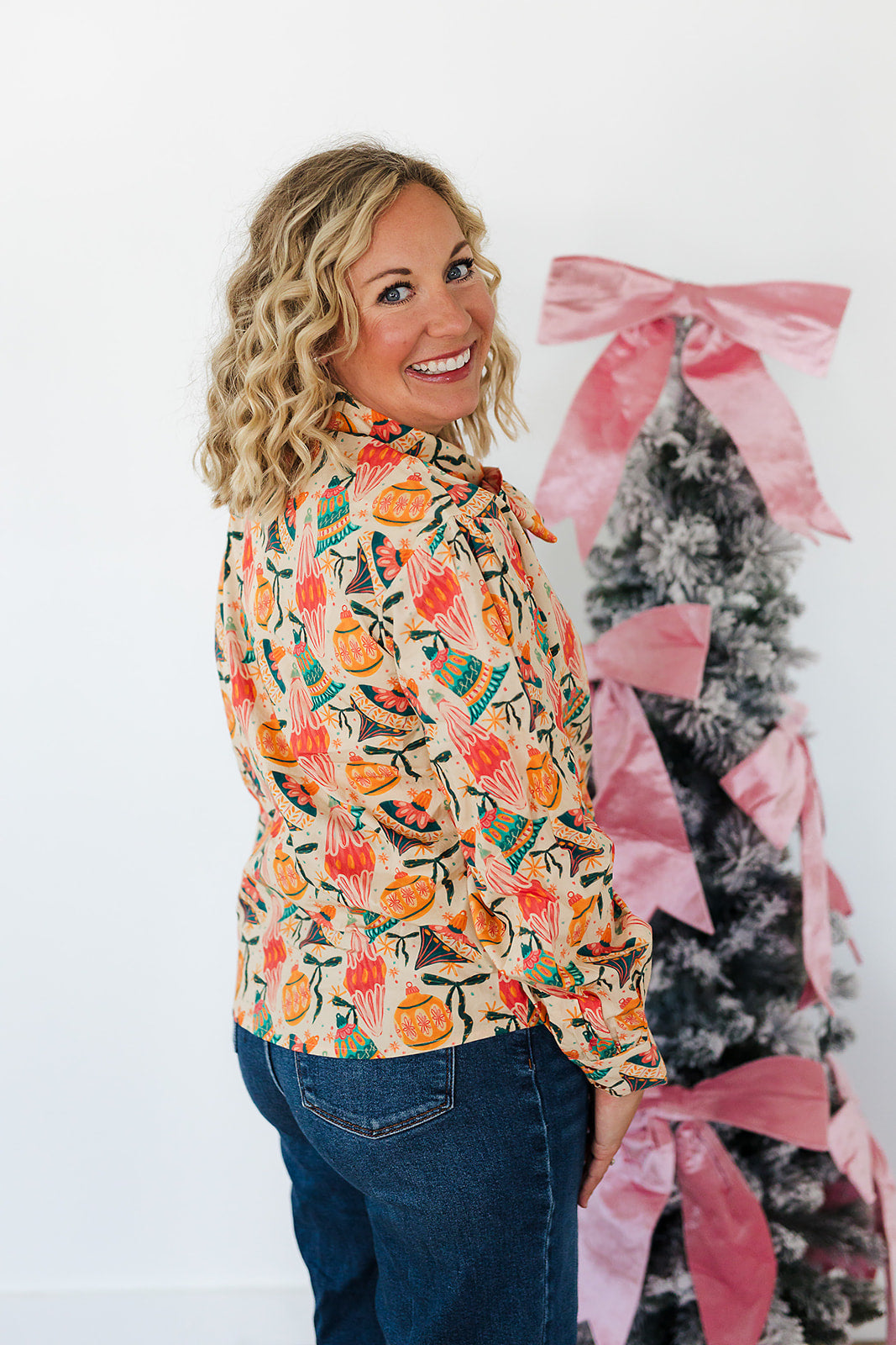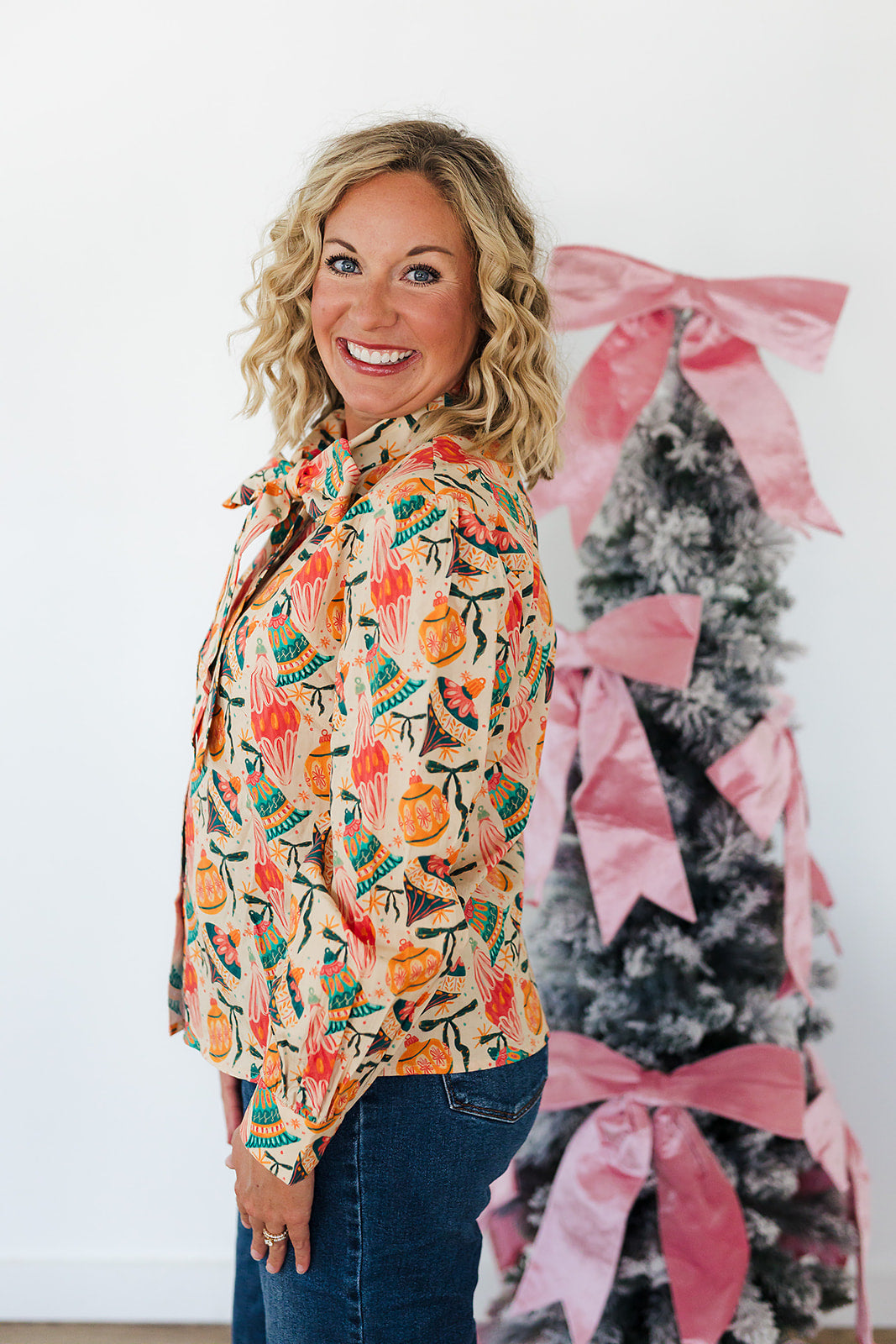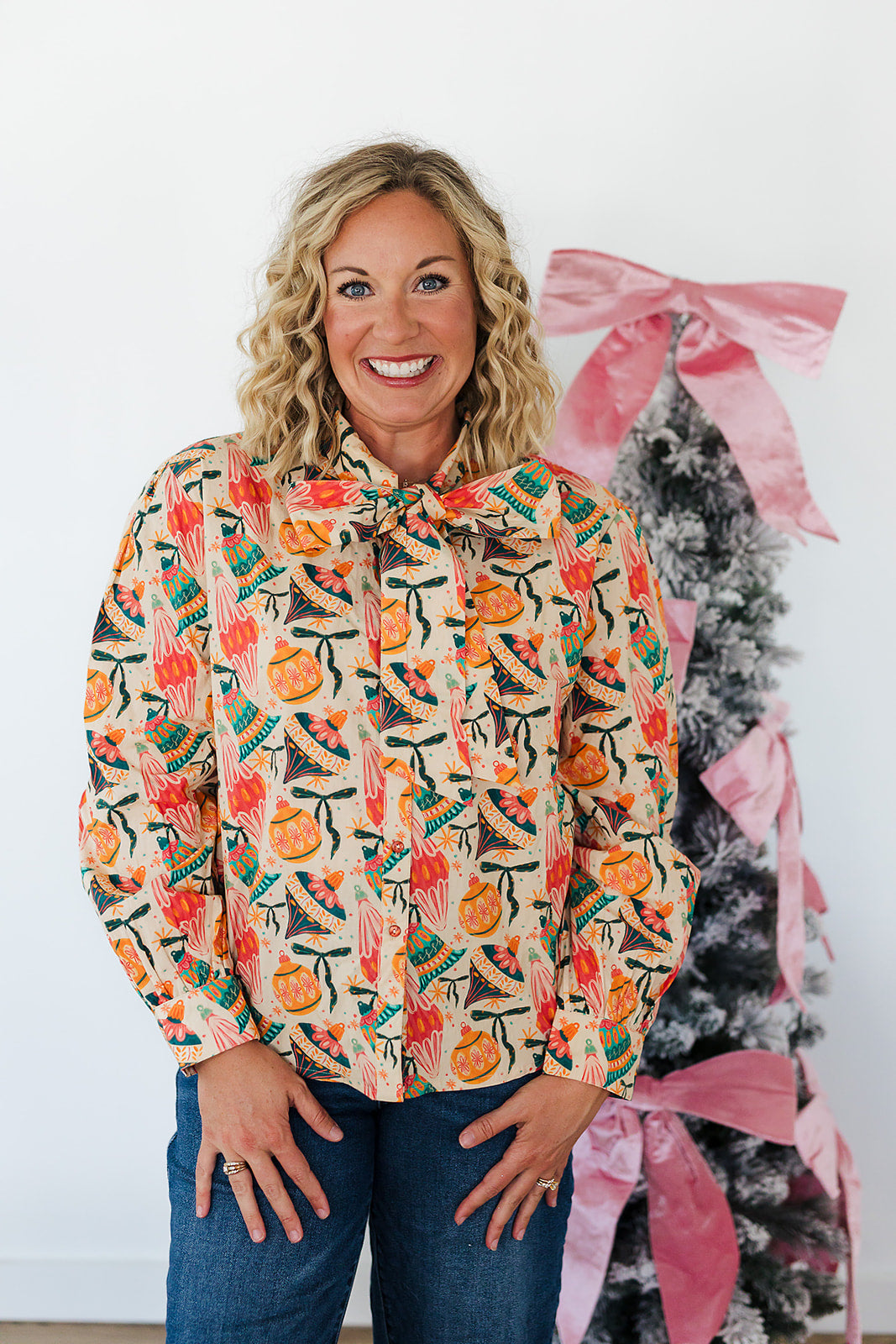 This top is perfect for Christmas family photos or paired with jeans. She has a bow feature that truly elevates.