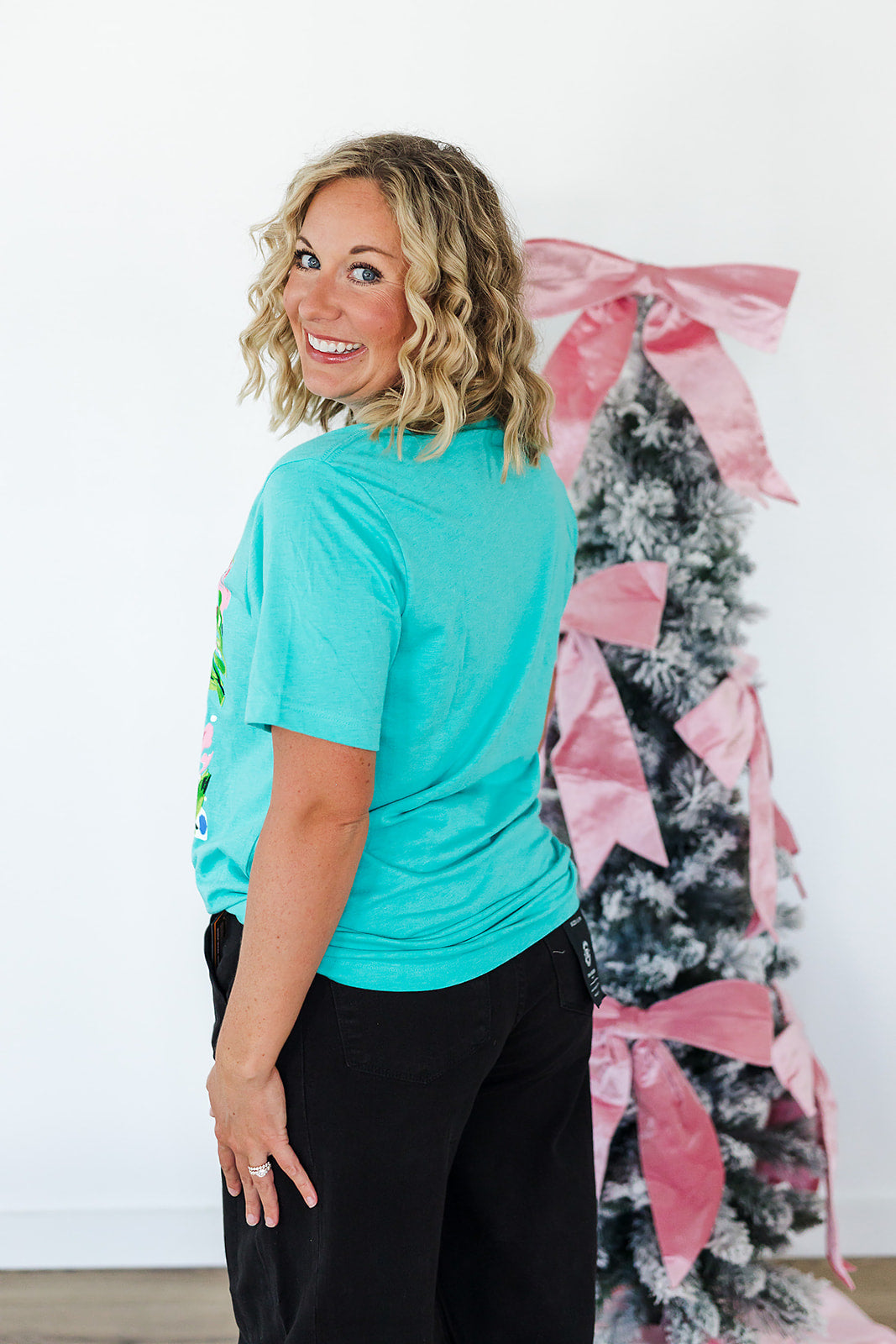 It's Frosty the Snowman!! Nothing makes your heart smile more than a perfectly painted snowman! Shown on a Bella Canvas sea green t-shirt.