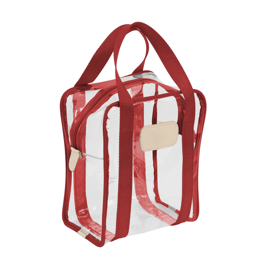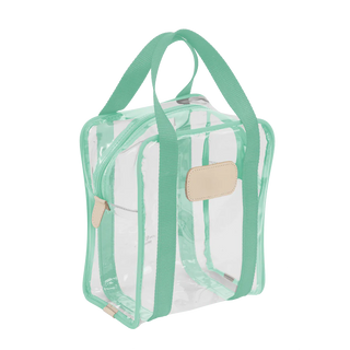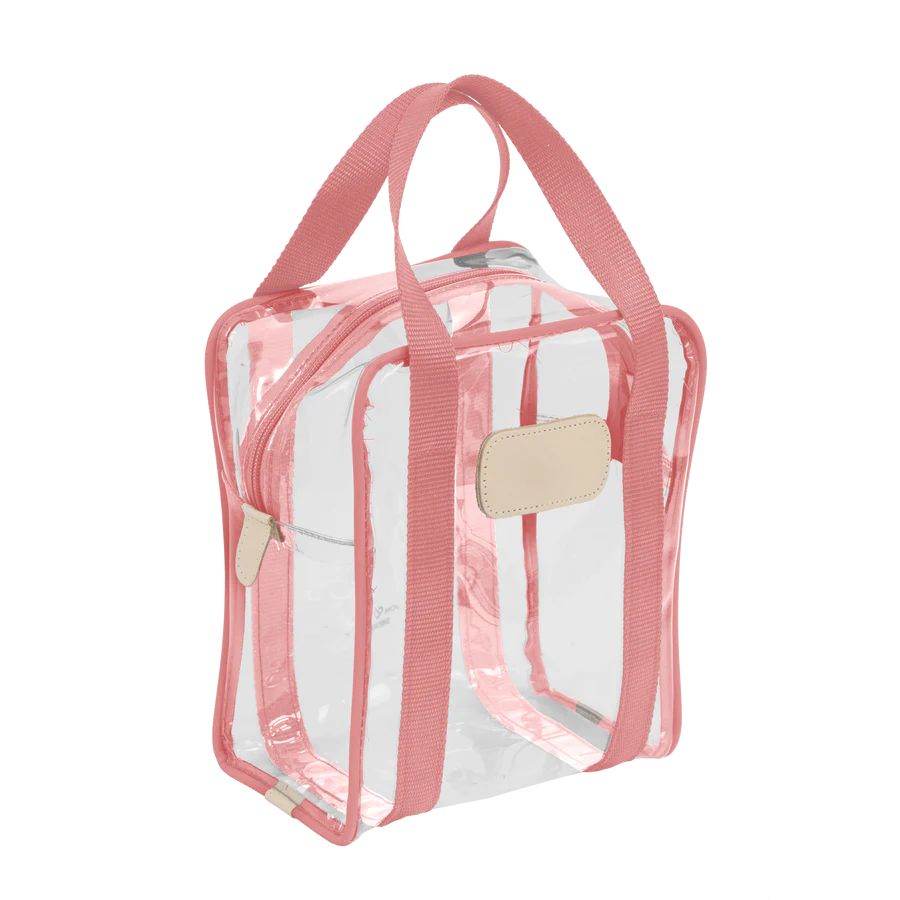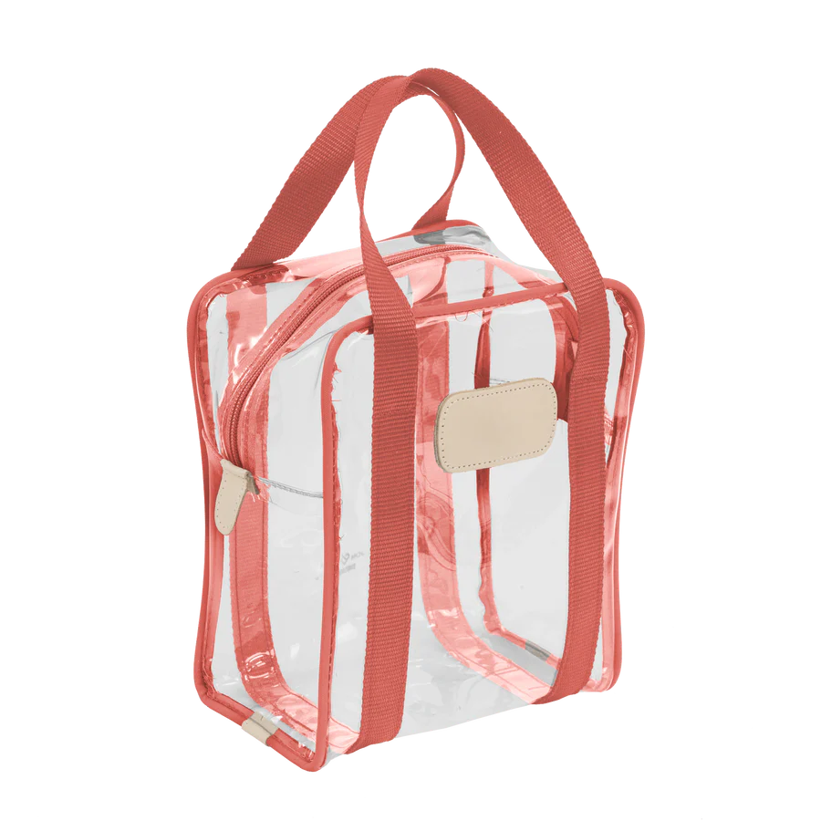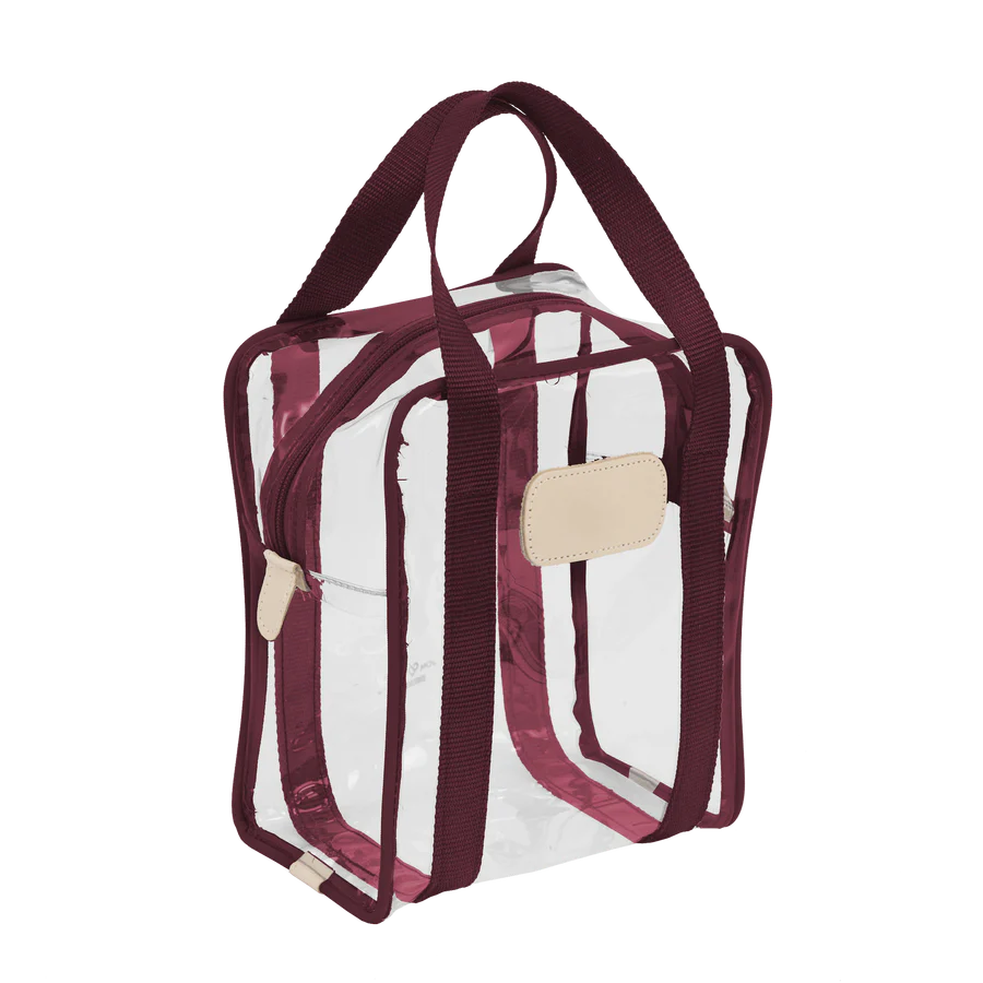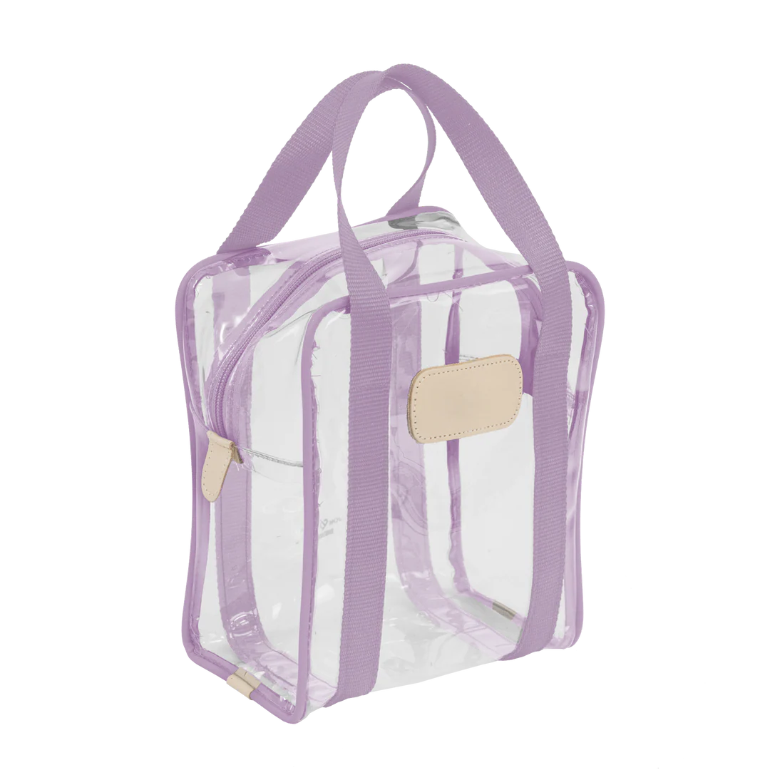 Clear Plastic material with Coated canvas Trim and a Natural Leather Patch