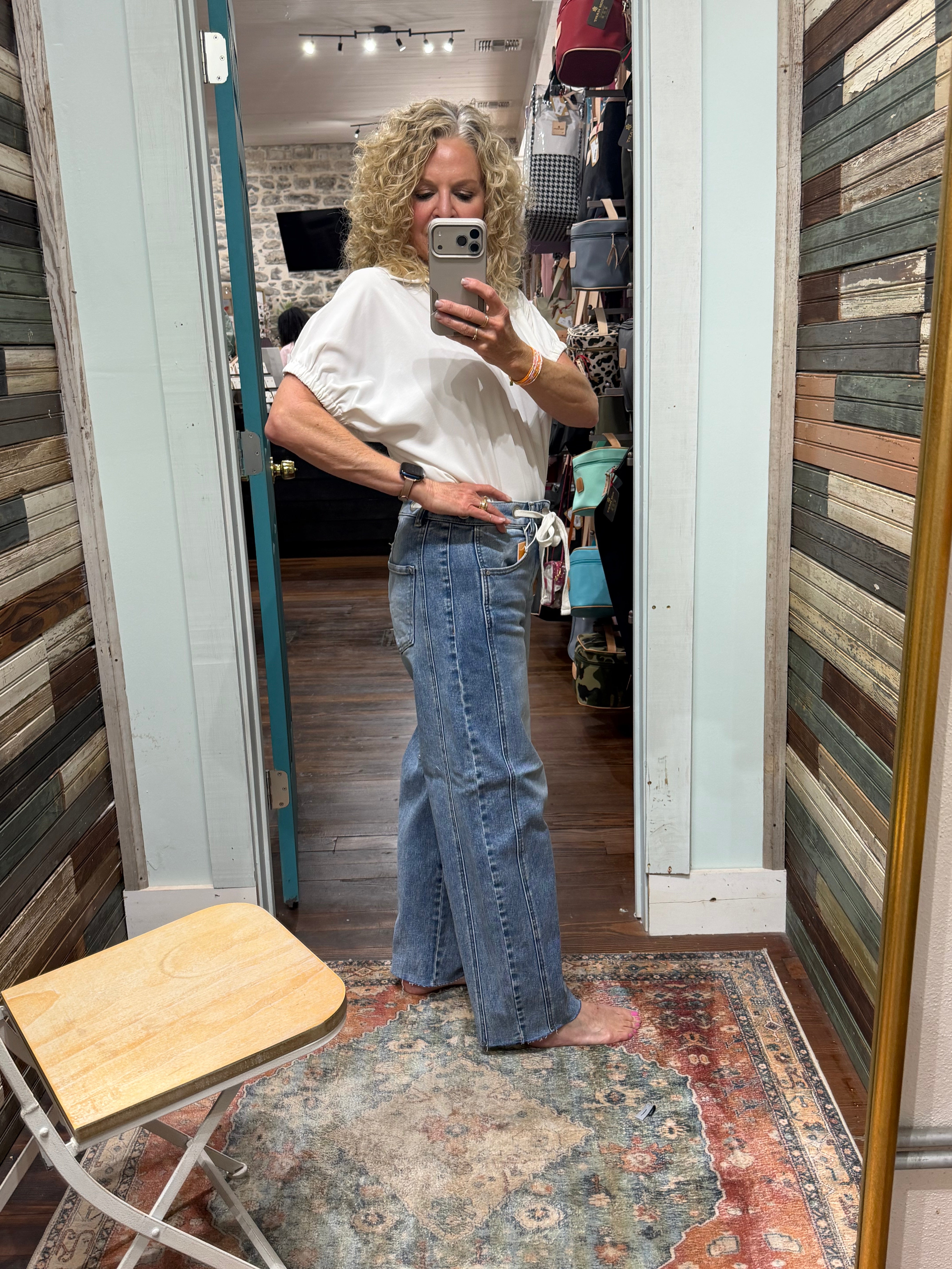Sloughy Ankle Barrel Jeans with Waistband Drawstring and Eyelet Details