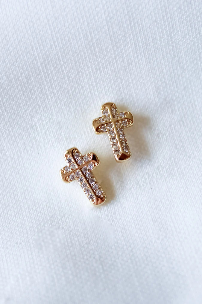 Blend spirituality and style with our Noah Cross Studs. Crafted with a gold finish and shimmering stones, these gold cross earrings add a touch of sophistication to your look.