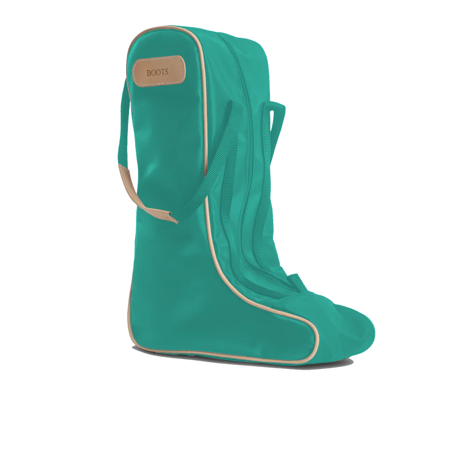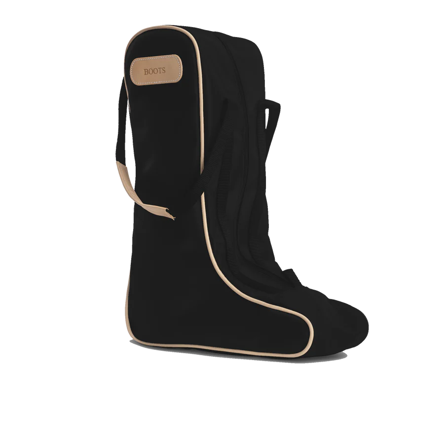 Coated canvas with Natural Leather trim. Holds up to a size 14 boot.