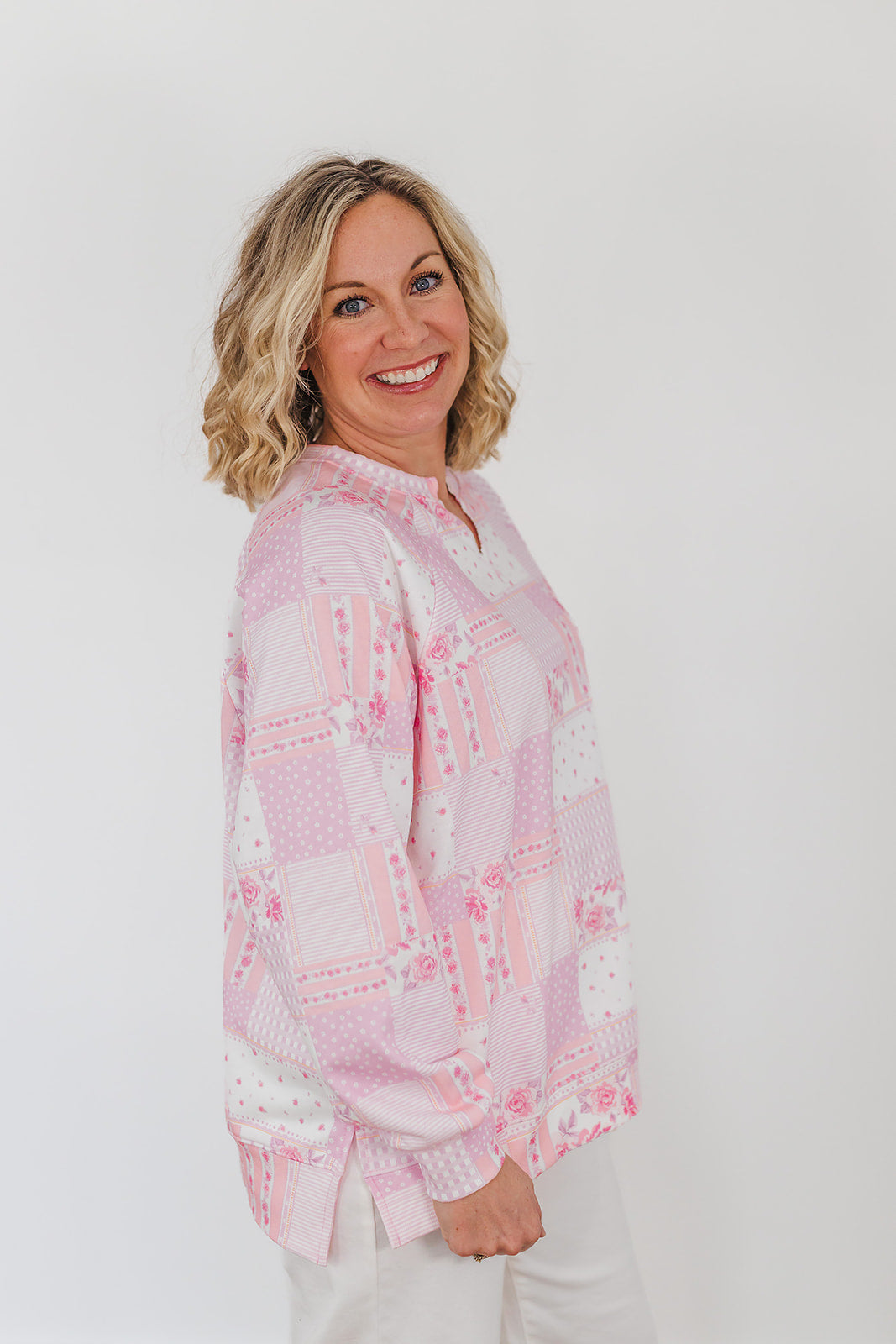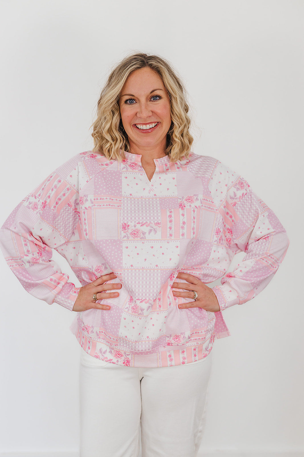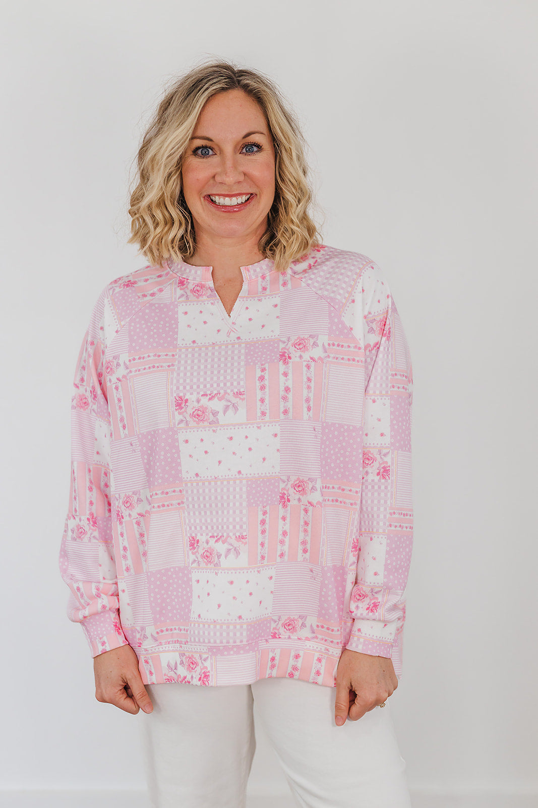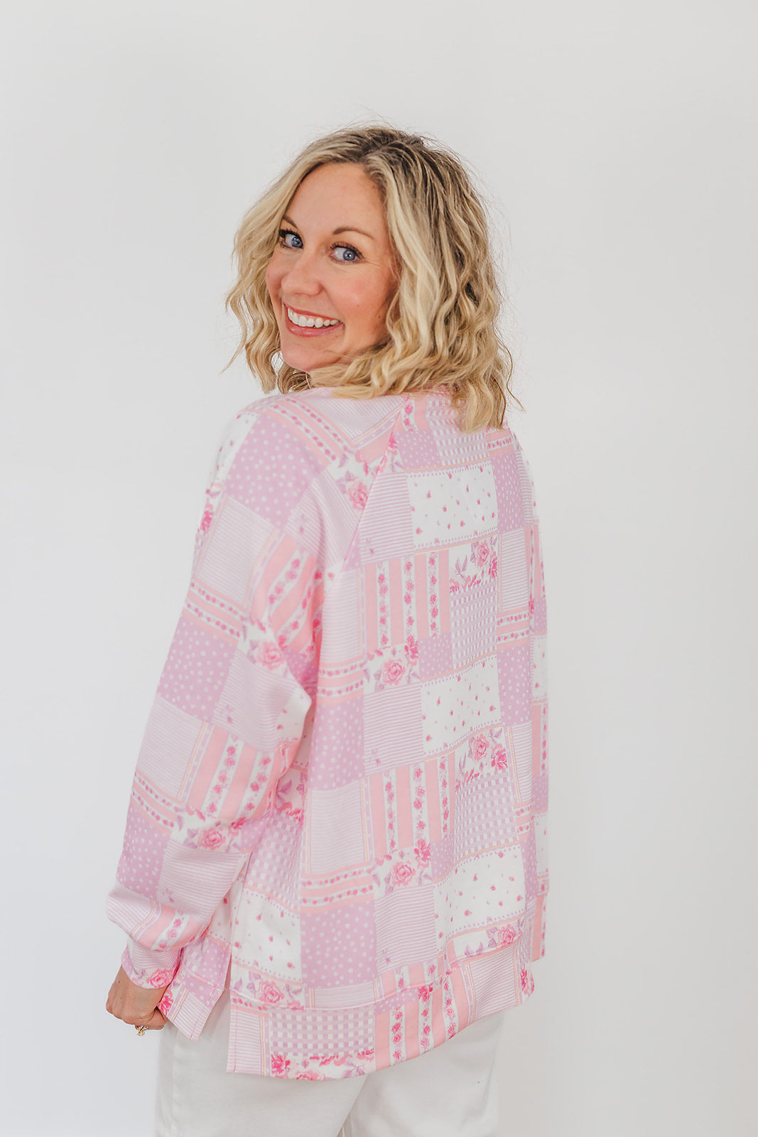 Welcome the Riley French Terry Pullover in Pink Patchwork—the ultimate choice for those easygoing days spent relaxing or on the go in stylish comfort. Its unique french terry fabric brings a playful touch and cozy feel to your wardrobe. Perfect for chill vibes, this spirited pullover will quickly become your favorite grab-and-go piece!