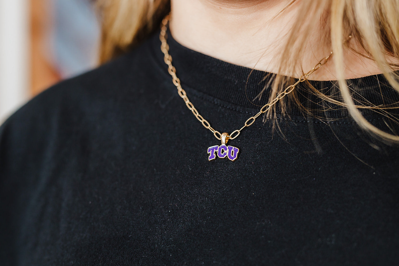 This pendant necklace is the perfect piece to show off your school spirit! its small pendant features the Texas Christian University logo in enamel, making it an excellent gift for the Horned Frogs superfan.
