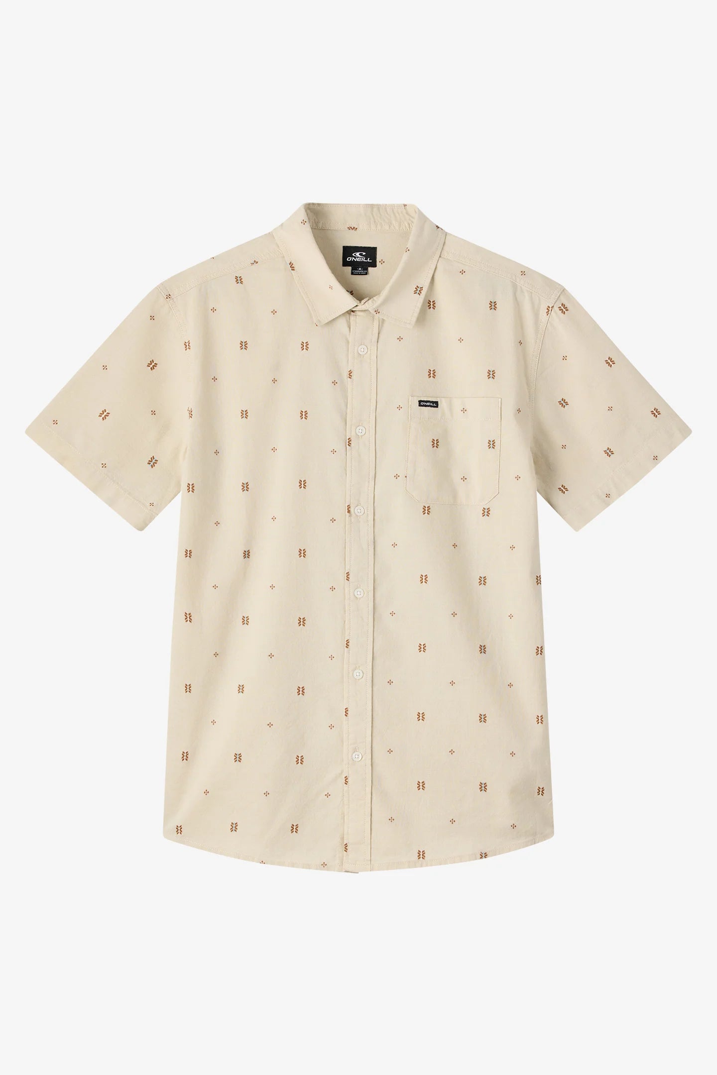 For sunshine and good times ahead. This essential button-up shirt has a front button closure, single chest pocket and allover print.