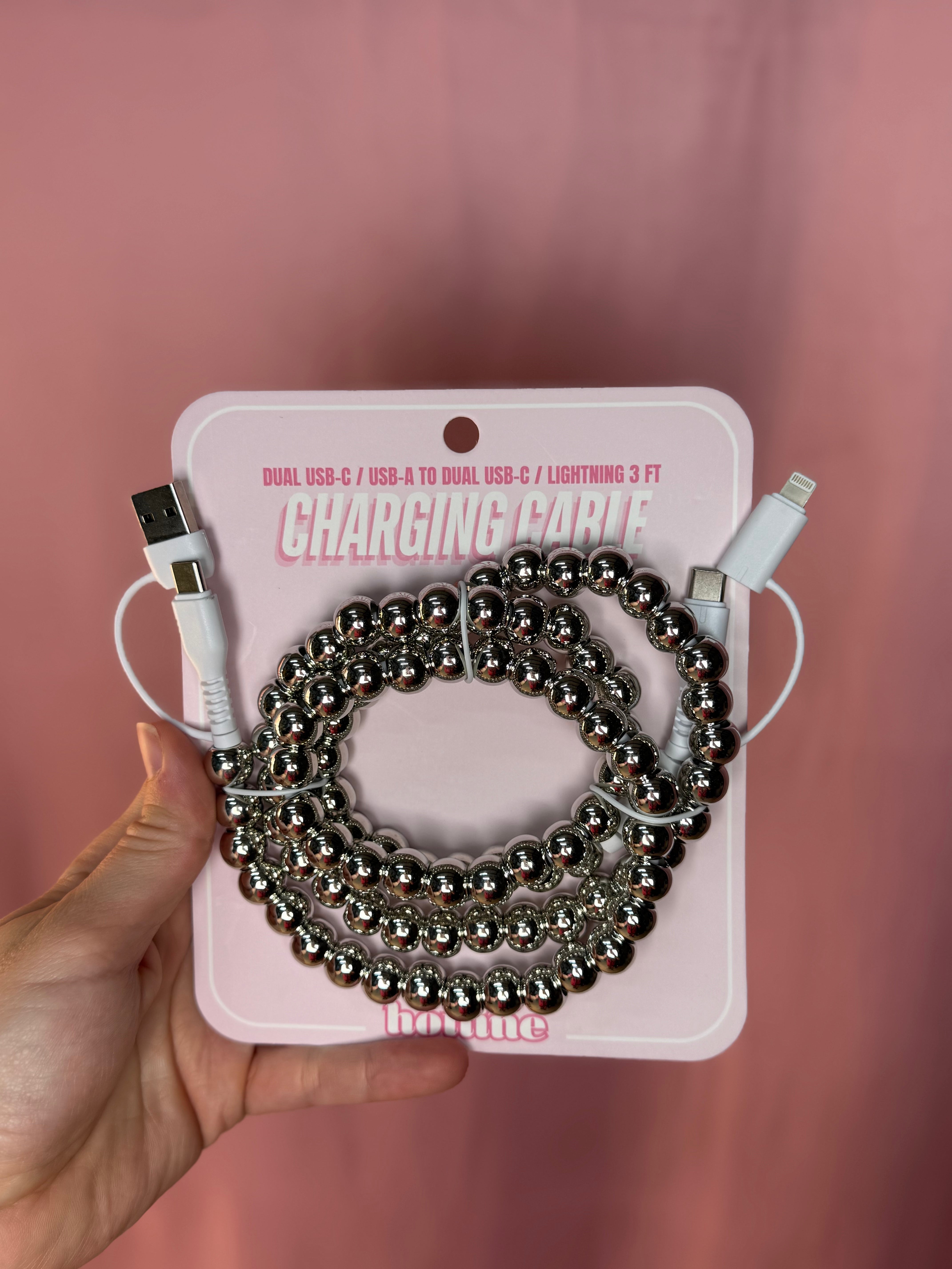Stay Charged and on trend with these cute and stylish charging cables! Perfect for your iPhone and androids with its dual lightning cord and USBc. Don't let your battery run out, stay connected in style.