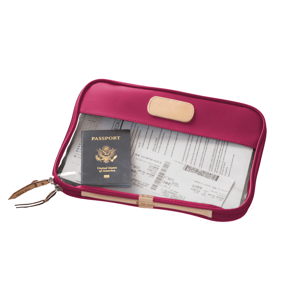Leave your worries behind & your stress in the folio. The Clear Foilo keeps you organized at work, while traveling and even just around the house! It keeps full sized papers, notebooks, important documents and so much more protected and organized. Also comes in Colored Leather & the JH Cotton Canvas.